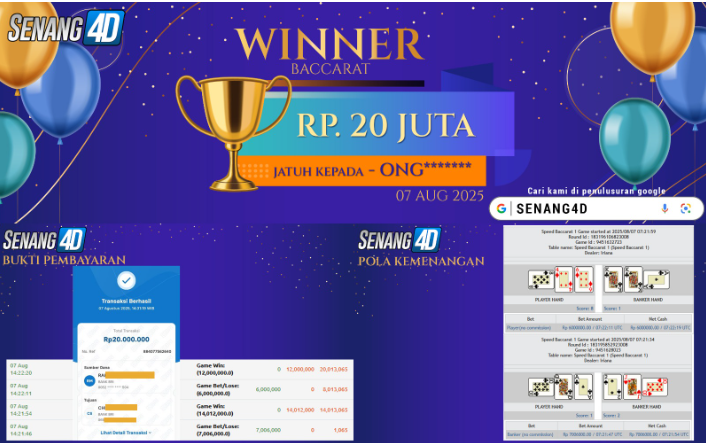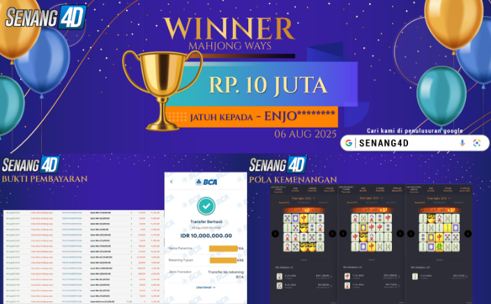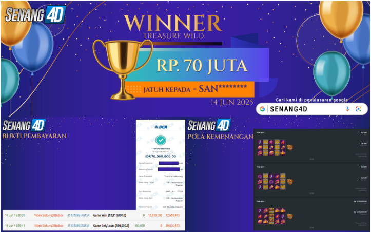 SENANG Group juga situs yang Mudah Gacor dan dengan Profit yang 98% meguntukan untuk anda bermain bersama kami. dengan bukti JP yang Telah di Terima oleh Member-Member SENANG GROUP